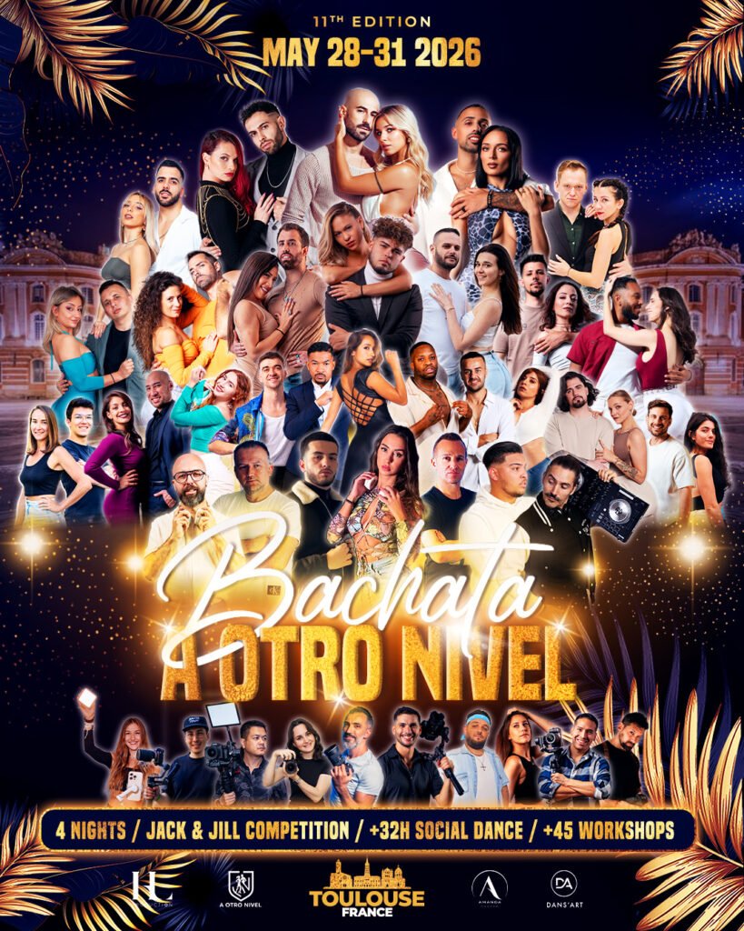 Bachata A Otro Nivel FESTIVAL28 -31 MAY 2026 WELCOME TO YOUR BEST FESTIVAL in toulouse Tickets –DAYS–HOURS–MINUTES–SECONDS H+Courses M2BALLroom TBATOULOUSE Facebook Instagram Whatsapp Mail